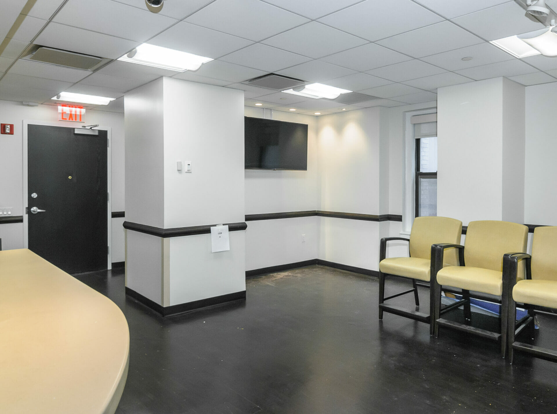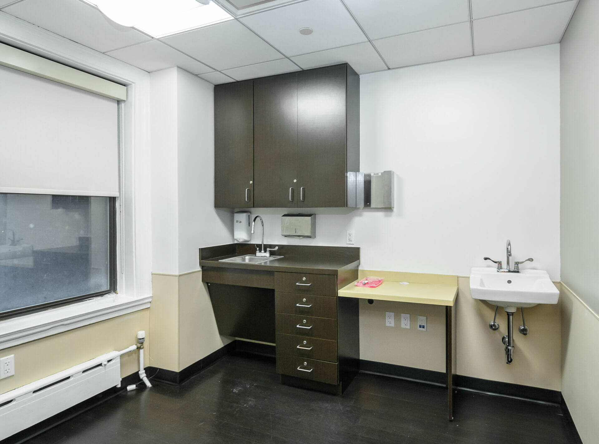 Substantial modification for Mount Sinai Hospital of the existing pain management office located at 200 West 57th Street. Renovation included the conversion of three existing spaces: a radiology room into a conference room, a storage closet into a soiled utility room, and an exam room into a fluoroscopy imaging room. Work also included renovating an existing exam room into a recovery room and the addition of exam room cabinets and sinks to two consult rooms.